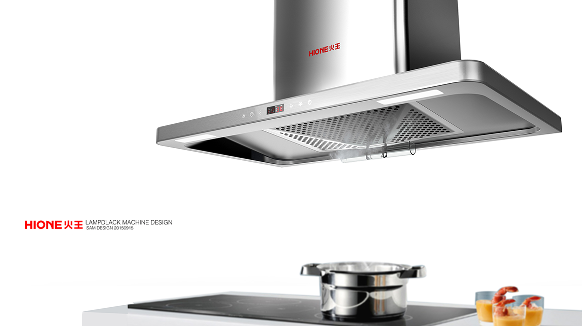 深圳市迪特格工业设计公司给火王燃器具有限公司设计的一款壁挂式T型油烟机。