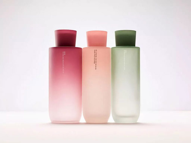 ■容器材料的选择和印刷技术的使用。这是出于技术考虑,不同材料对颜色的实现程度不同。比如塑料材料不仅容易成型,还可以呈现任何颜色,可以产生珠光、有色、磁白、透明等效果。再比如玻璃瓶高温油墨丝网印刷时,不易脱色,颜色沉闷,低温油墨丝网印刷时颜色鲜艳。因此,容器的颜色选择不仅要考虑视觉体验,还要考虑技术的可实现性。